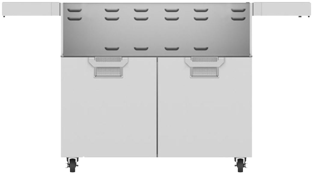 This grill-ready cart matches the 42” built-in grill in heavy-duty form and function. Fold-down side shelves offer extra work space when you need it. The two-door design allows easy access to gas tank and grilling tools. Commercial-grade casters deliver easy maneuverability.Read More