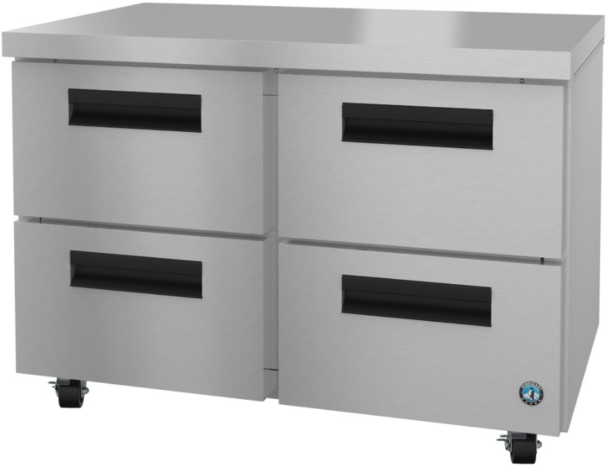 The UF48B-D4 Steelheart Series Undercounter two section freezer with stainless drawers is a space saving workhorse. Engineered to maintain food safe temperatures in 100°F ambient conditions with a net capacity of 12 cubic feet this efficient undercounter freezer and front air flow design is perfect for hot/tight kitchens.Read More