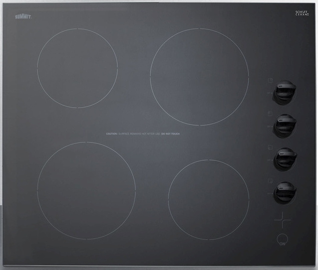 Summit offers an extensive selection of radiant cooktops for all kitchen spaces, including 24" wide European choices. The CR4B242BK is a 230V 6000W electric cooktop designed to fit common 22 1/8" W x 19 3/8" D cutouts.Read More