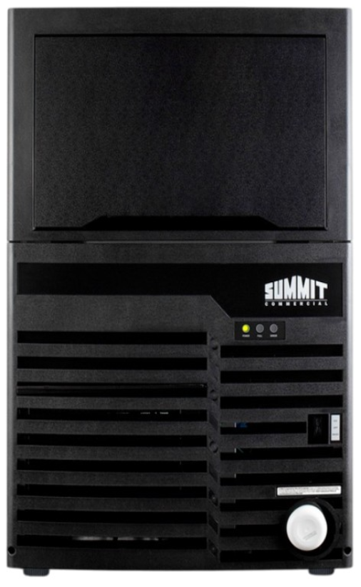 Made for Summit in South Korea, the BIM100ADA is ETL-S listed to NSF-12 standards for use in commercial applications.This unit features a fully finished stainless steel cabinet and jet black front with a slide-up lid. It can be built-in under counters or used freestanding, with a front-breathing air-cooled system to prevent overheating. The BIM100 produces up to 100 lbs. of clear dice style ice cubes per day. The interior can store up to 27 lbs. to help meet the needs of high traffic commercial environments, with an automatic sensor to prevent overproduction.