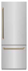 Luxury isn’t meant to be left desired—it’s meant to be attainable. The ZLINE Autograph Edition 30 in. 16.1 cu. ft. Built-In Bottom Freezer Refrigerator with Water Dispenser and Ice Maker in Stainless Steel with Graphite Gray interior and Champagne Bronze Helix Handles provides the ultimate upgrade to the center of your home.Read More