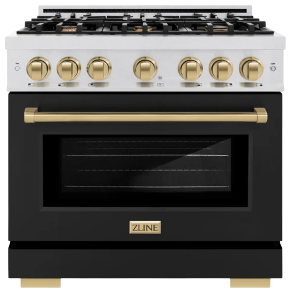Luxury isn’t meant to be desired - it’s meant to be attainable. The ZLINE Autograph Edition 36 in. 5.2 cu. ft. Select Gas Range with 6 Burner Cooktop and Convection Gas Oven in Satin Stainless Steel with Black Matte Door and Champagne Bronze Accents (HGRSZ-BLM-36-CB)Read More